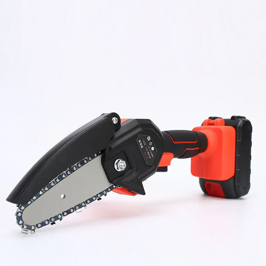 LICHIDARE STOC: Mini Fierastrau Electric Cu Acumulatori 24V, 2x Baterie + 2x Lant + 2x Lama, 4 Inch + CADOU pila 25cm + GEANTA de depozitare