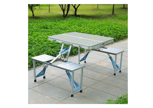 Masa Pliabila, Tip Geamantan, Cu 4 Scaune si Suport Umbrela, Din Aluminiu