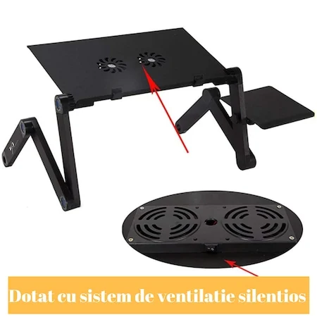Masa Laptop Pliabila, Cu 2 Ventilatoare, Reglabila, Suport Mouse Inclus