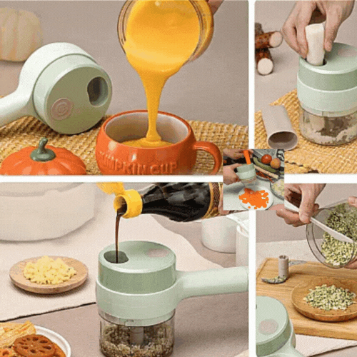 Maruntitor 4in1 Electric pentru Alimente Ideal pentru Taiere Carne, Legume, Fructe, Portabil, Culoare Verde