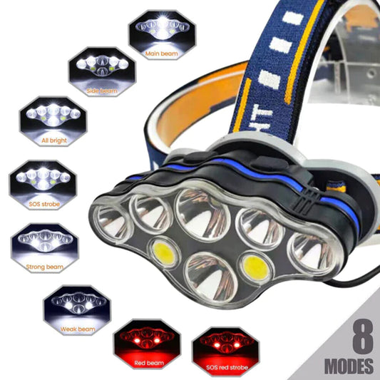 Lanterna Pentru Cap, Cu Becuri LED, Rezistenta La Apa, 8 Moduri De Iluminare, Incarcare USB