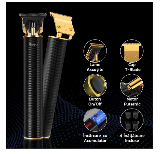 Masina Profesionala de Tuns Barba Si Contur - Autonomie Acumulator 120 minute, Lama Inox, Negru
