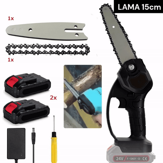 Pachet PROMO: Mini Fierastrau Electric Cu Acumulatori 24V, 2x Baterie + 2x Lant + 2x Lama, 6 Inch + CADOU pila 25cm