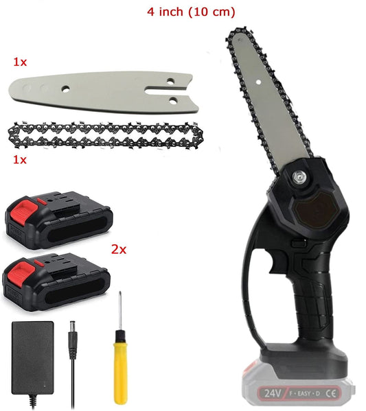 Pachet PROMO: Mini Fierastrau Electric Cu Acumulatori 24V, 2x Baterie + 2x Lant + 2x Lama, 4 Inch + CADOU pila 25cm