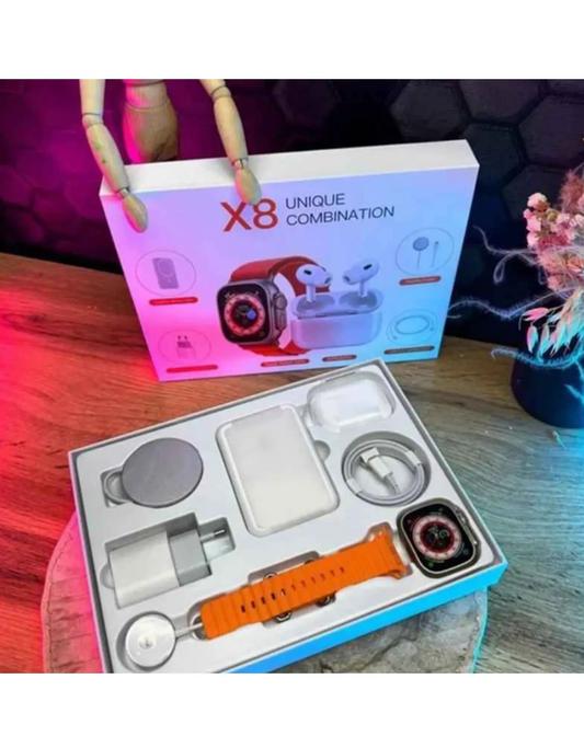 Pachet Smart Unique X8: Ceas Inteligent, Casti Wireless, Baterie Externa Magnetica, Compatibilitate Android/ iOS