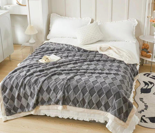 Patura Cocolino Pufoasa si Calduroasa, Cu Blanita, Model Romburi, 200 x 230 cm