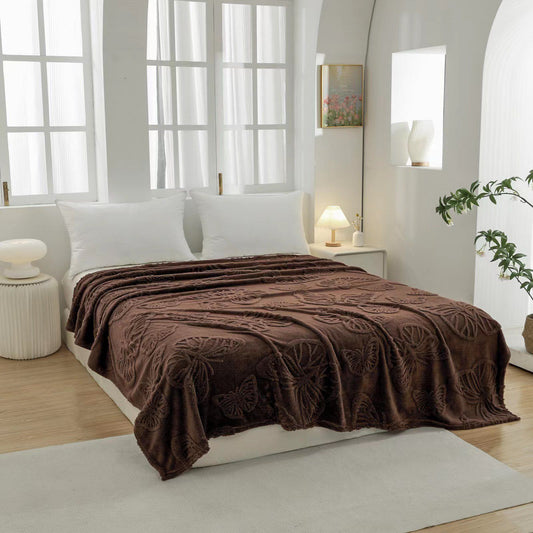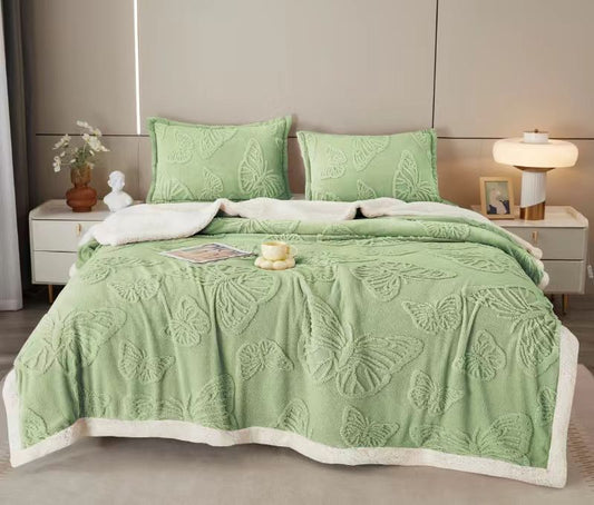 Patura Cocolino Pufoasa si Calduroasa, Cu Blanita, Model Fluturi, 200 x 230 cm + 2 Fete De Perna CADOU