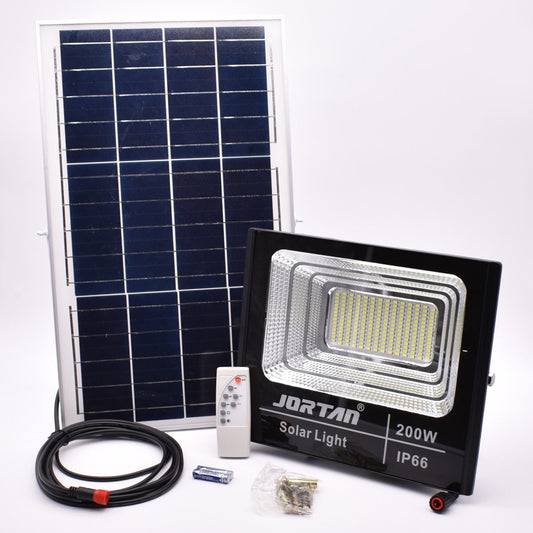 Pachet Promotional: Proiector Rezistent Si Puternic Jortan 200W + Panou Solar + Telecomanda Si Accesorii,Incarcare Rapida