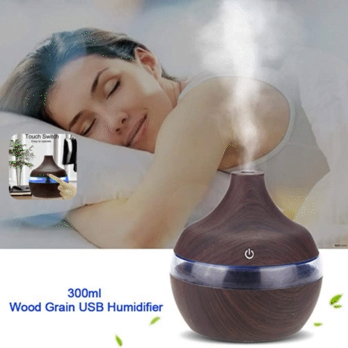 1+1 GRATIS: Difuzor Aromaterapie Cu Ultrasunete Si Umidificator Cu LED, 300 ml, Wenge + 24 uleiuri CADOU