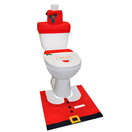 Set Decorativ Pentru Toaleta, Model Mos Craciun, 3 Piese
