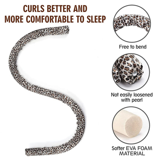 Set Ondulator fara caldura pentru par cu 2 Elastice matase si 1 Clame, print leopard+Perie de scame CADOU