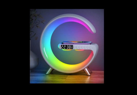 Statie 3 in 1 cu Lumina Ambientala RGB, Boxa Bluetooth si Incarcare Wireless Pentru Telefon, Alb