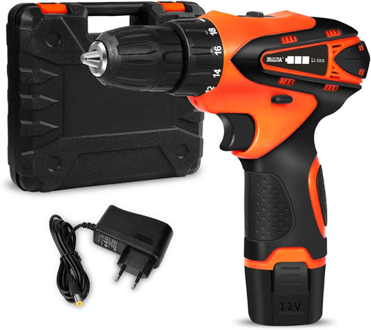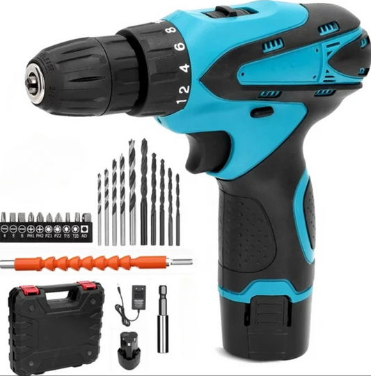 Bormasina Electrica cu 2 Acumulatori, 12V, 25 De Accesorii + Geanta De Transport CADOU