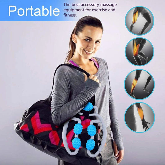 Aparat Manual Pentru Masaj Muscular, 5 Role, Brate, Umeri, Picioare, Solduri, Gri/Albastru + 10 plasturi Kinoki CADOU