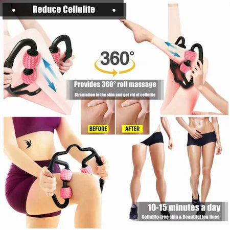 Aparat Manual Pentru Masaj Muscular, 5 Role, Brate, Umeri, Picioare, Solduri, Roz/Negru + 10 plasturi Kinoki CADOU