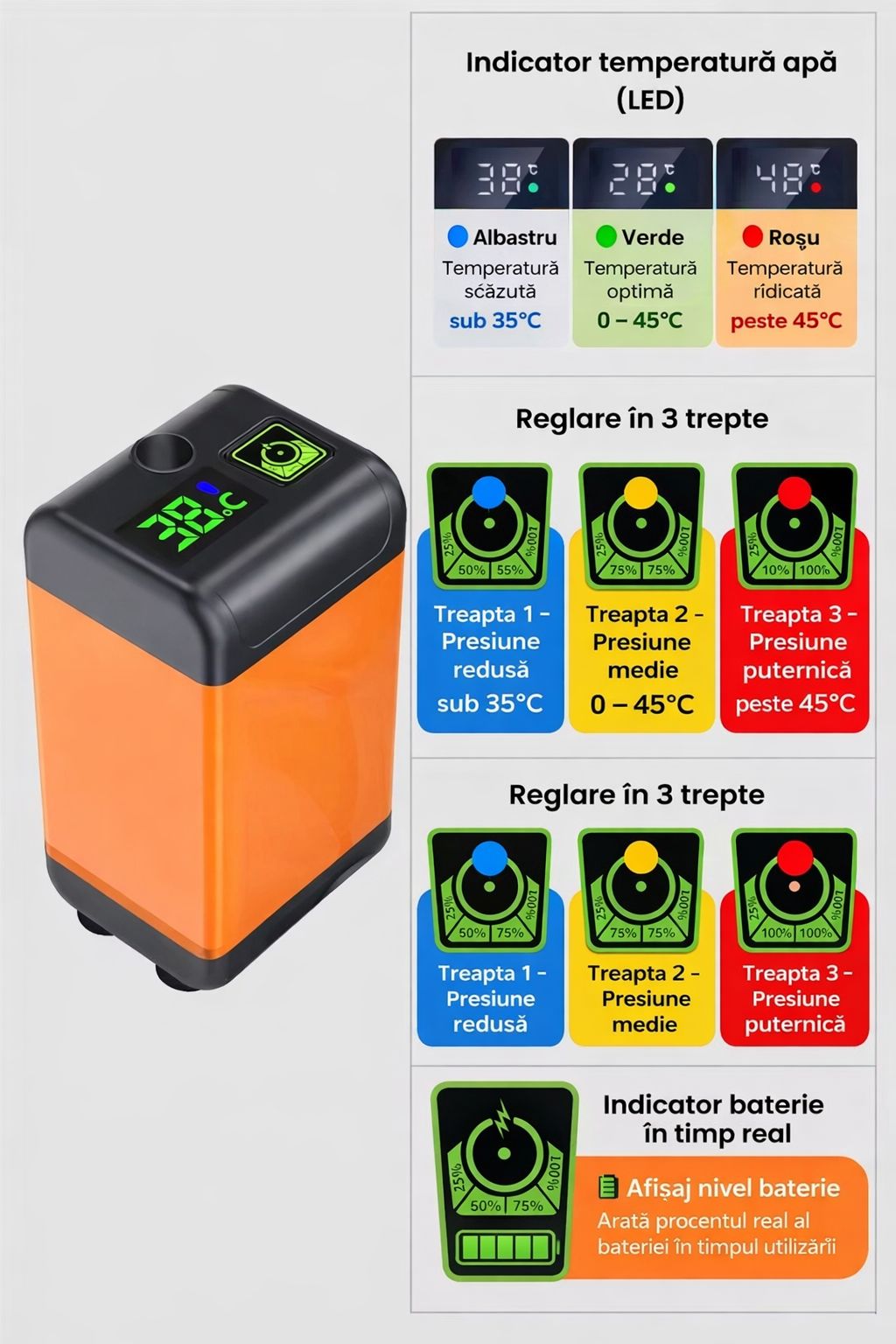 Ecranul inteligent afiseaza temperatura apei in timp real, pentru siguranta si confort.