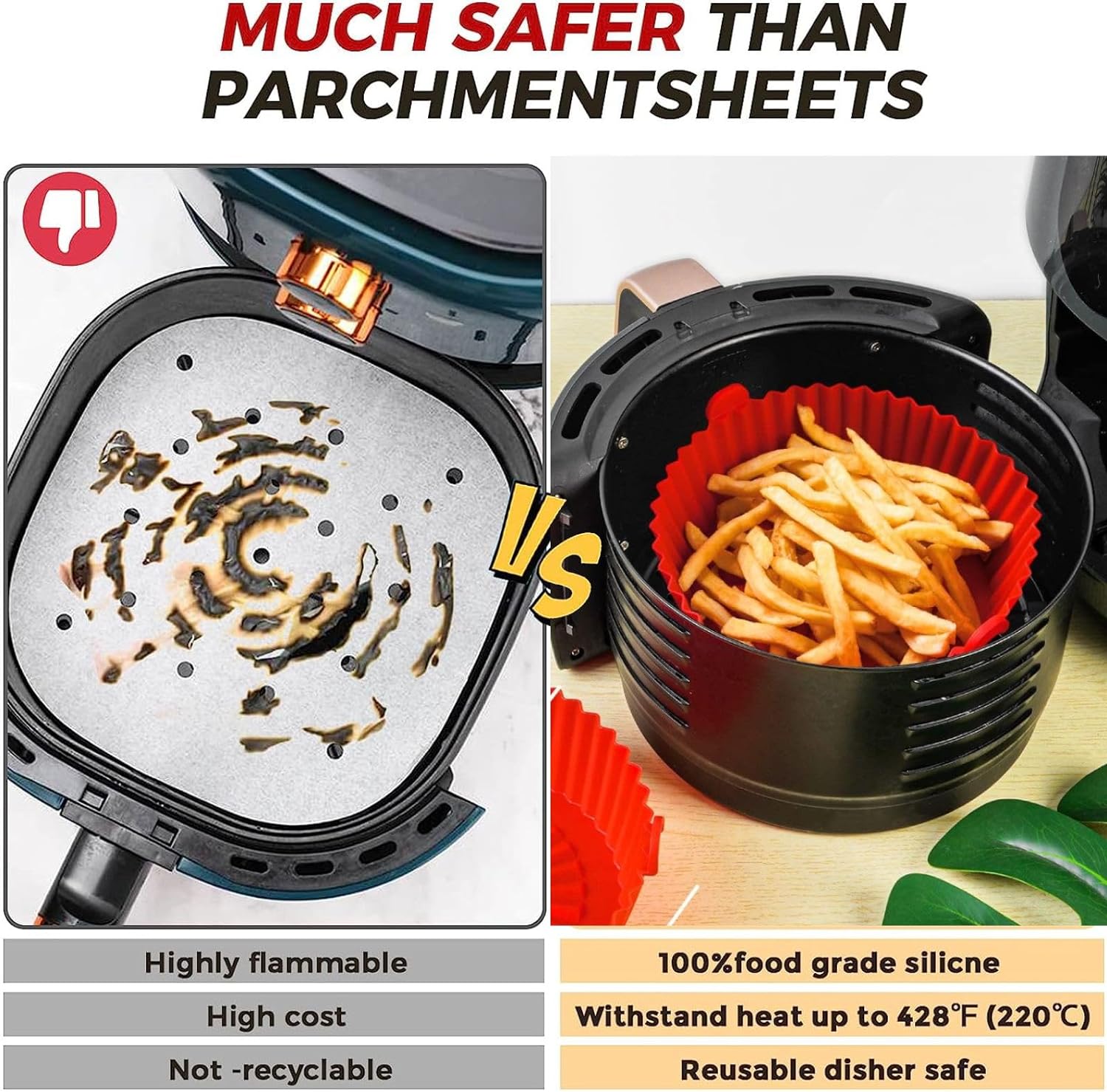 Formele din silicon alimentar fara BPA, reutilizabile, sunt accesorii versatile si practice in bucatarie, fiind potrivite pentru friteuze, cuptoare, cuptoare cu microunde si tigai. Fiind fabricate din silicon alimentar de inalta calitate, acestea sunt concepute pentru a rezista la temperaturi ridicate (maxim 230°C).