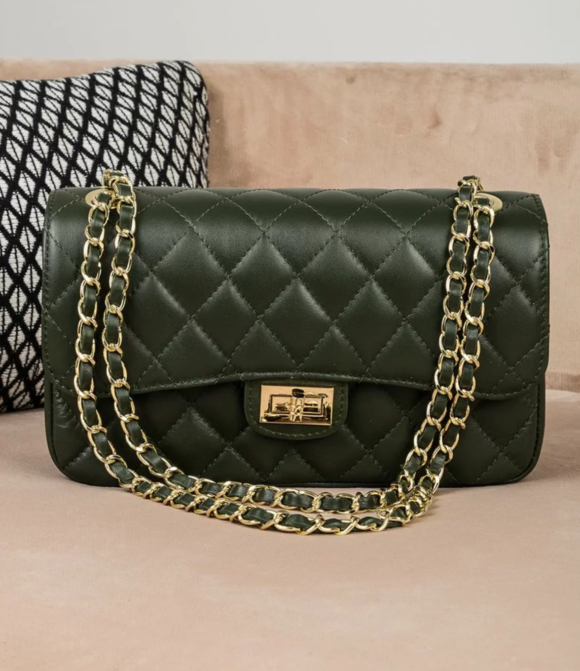 Este o poseta realizata din piele ecologica matlasata moale, de o calitate exceptionala. Finisajele aurii aduc un aer distins, elegant, tinutelor tale. Breteaua de umar se poate fi transformata in doua manere, pentru purtarea pe brat. Este, consideram noi, un must have in garderoba ta!