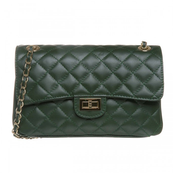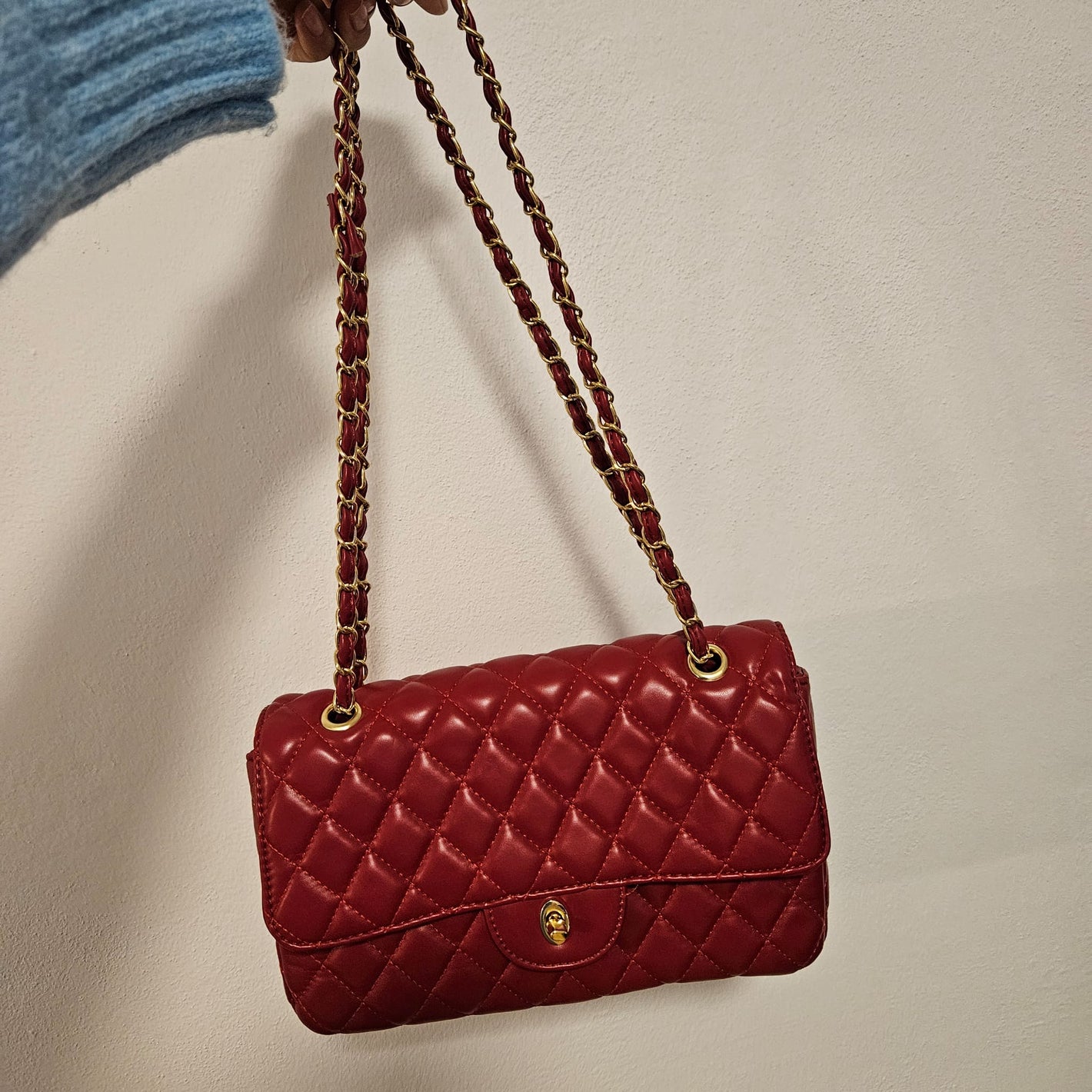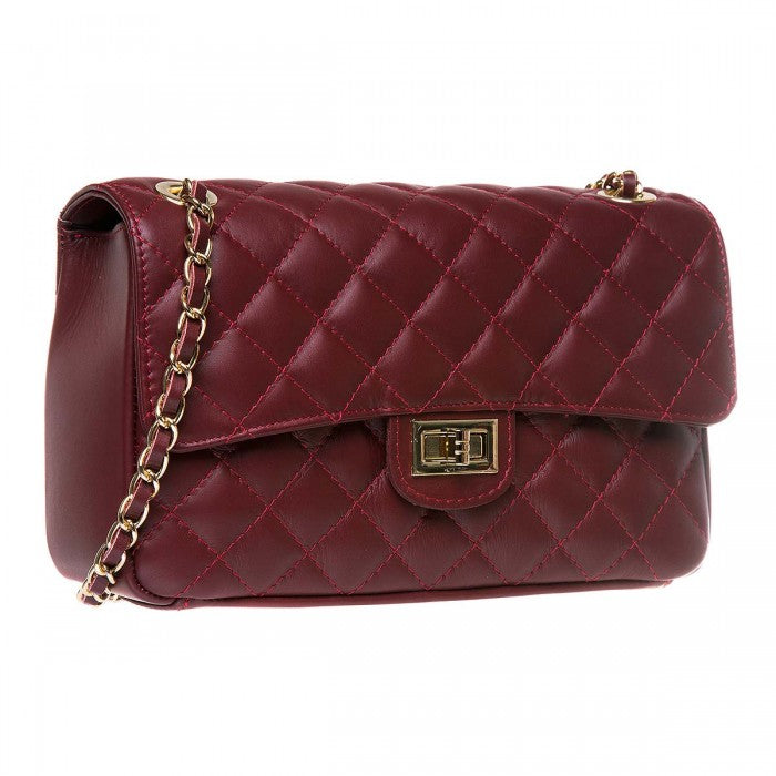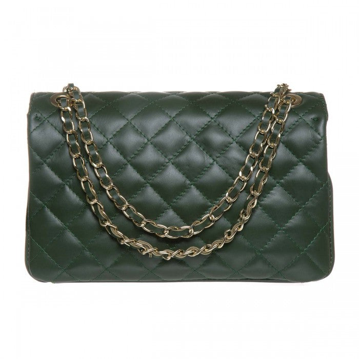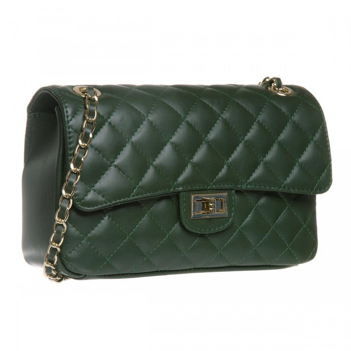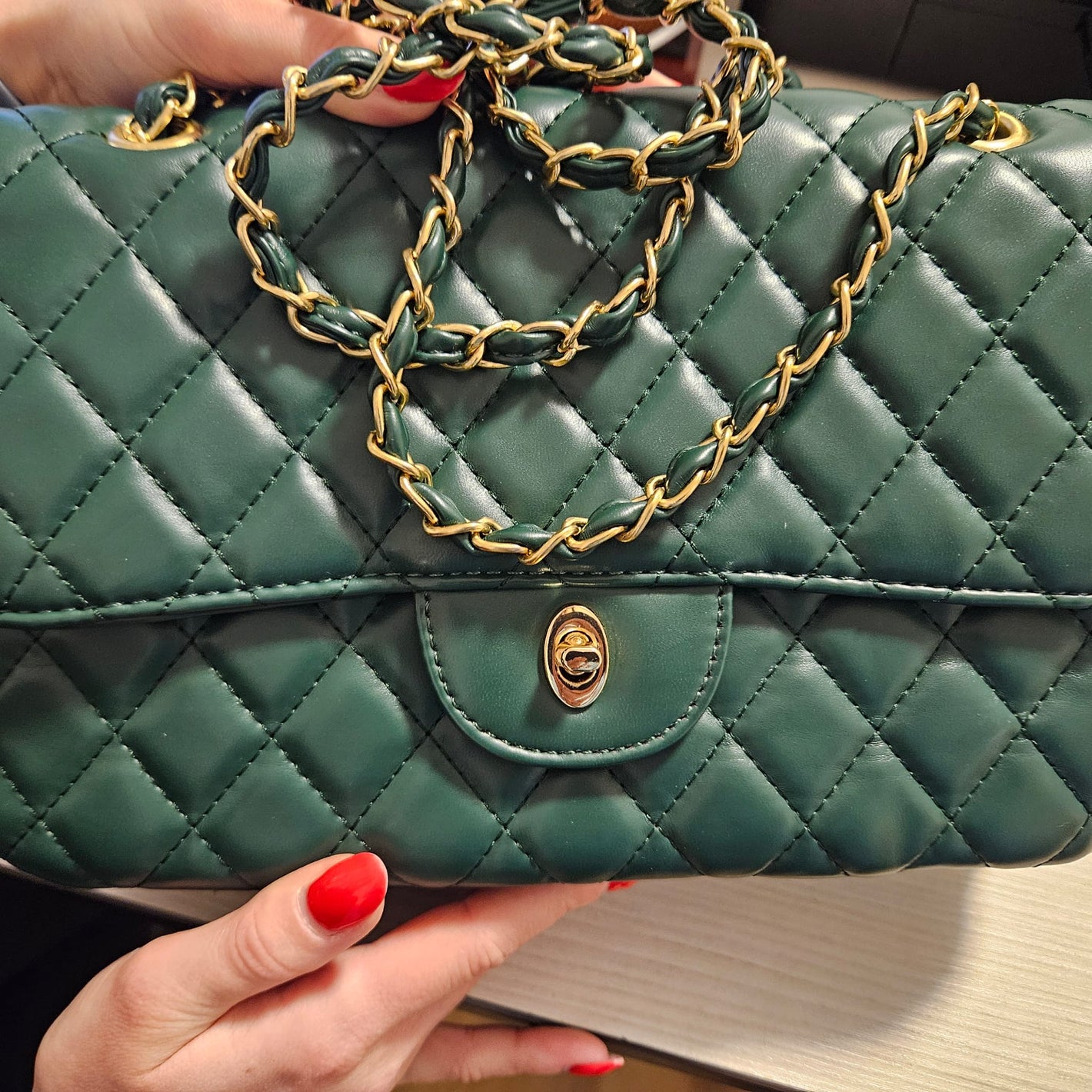 Este o poseta realizata din piele ecologica matlasata moale, de o calitate exceptionala. Finisajele aurii aduc un aer distins, elegant, tinutelor tale. Breteaua de umar se poate fi transformata in doua manere, pentru purtarea pe brat. Este, consideram noi, un must have in garderoba ta!