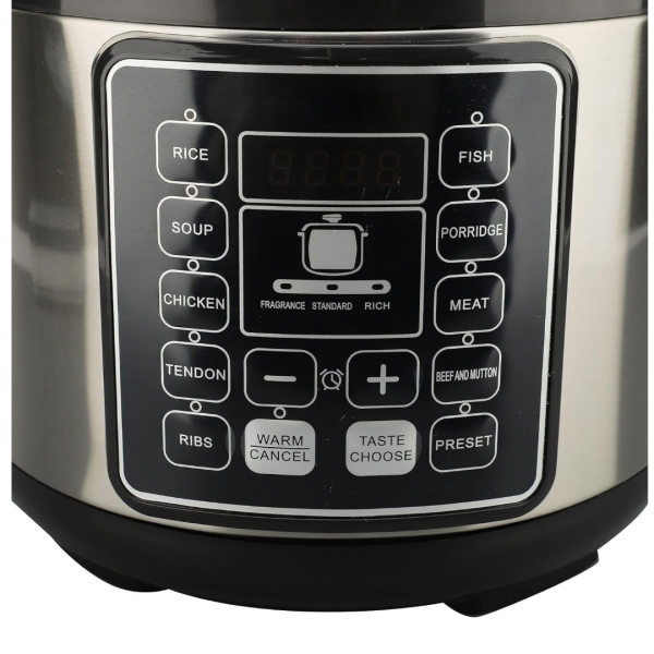 Panoul digital cu afișaj clar îți permite să selectezi programe prestabilite sau să reglezi manual timpul și temperatura. Cu un singur buton poți alege funcția dorită, iar Multicooker-ul își ajustează automat nivelul de presiune și temperatura pentru rezultate perfecte de fiecare dată.