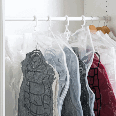 Acești saci de vidat au făcut minuni pentru organizarea hainelor mele. Potrivirea perfectă a umerașelor și agățătoarelor face ca depozitarea să fie mai eficientă.